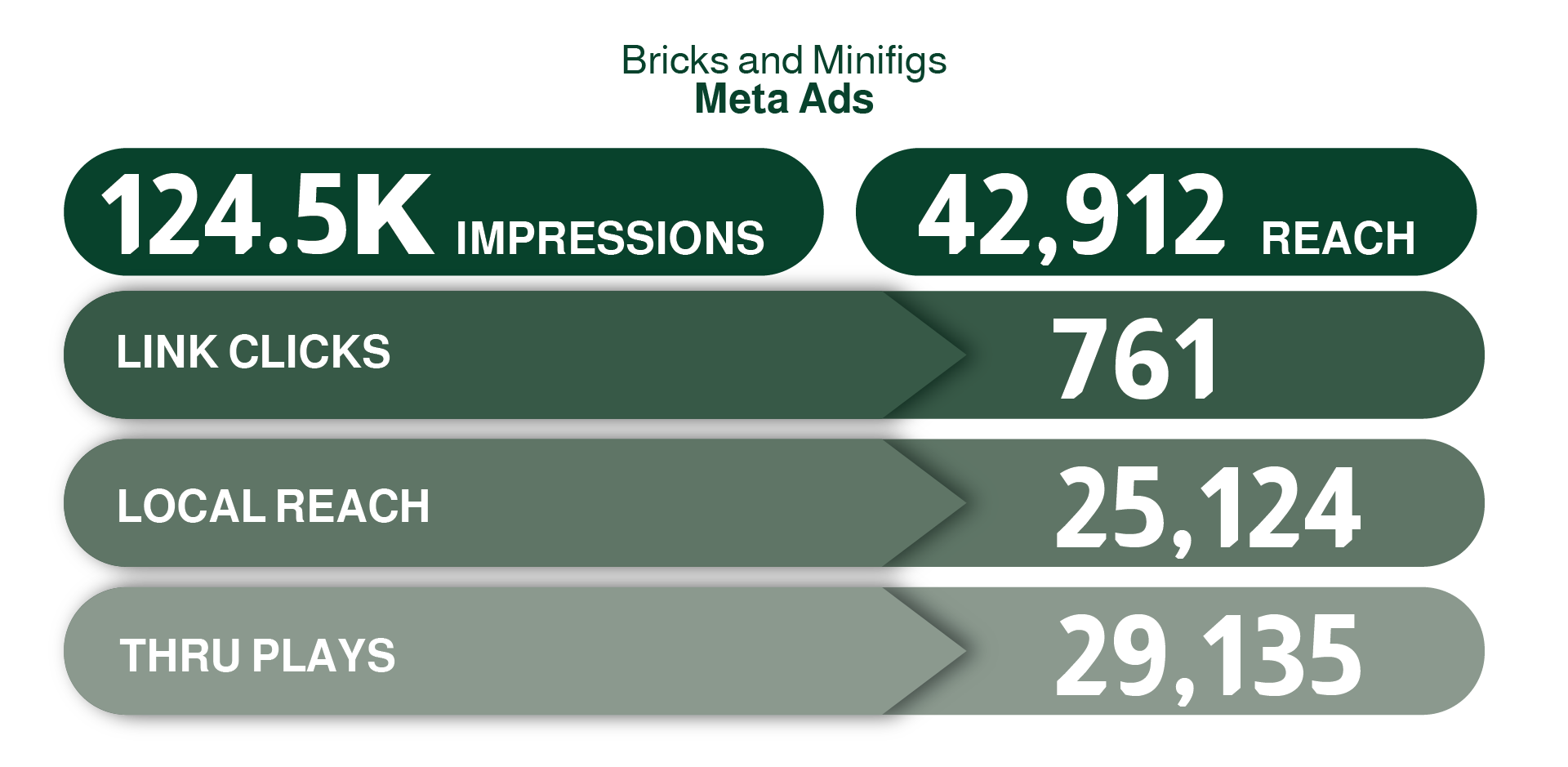 To increase foot traffic and local awareness for Bricks & Minifigs Kalamazoo, I developed a visibility-first marketing strategy focused on community presence, content consistency, and local advertising.